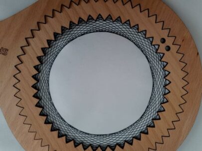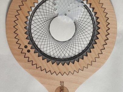 Sestavljen je iz zunanjega lesenega oboda z vstavljivim notranjim delom in treh koleščkov. Velikost oboda ustreza velikosti A4 lista. En kolešček je narejen iz lesa, dva pa iz prosojnega mlečnega pleksi stekla, skozi katera se lahko vidi vzorček, ki ga ustvarjate.